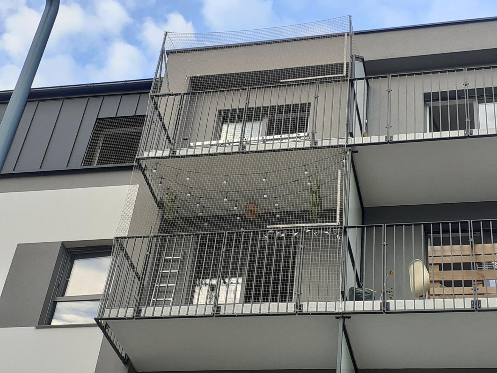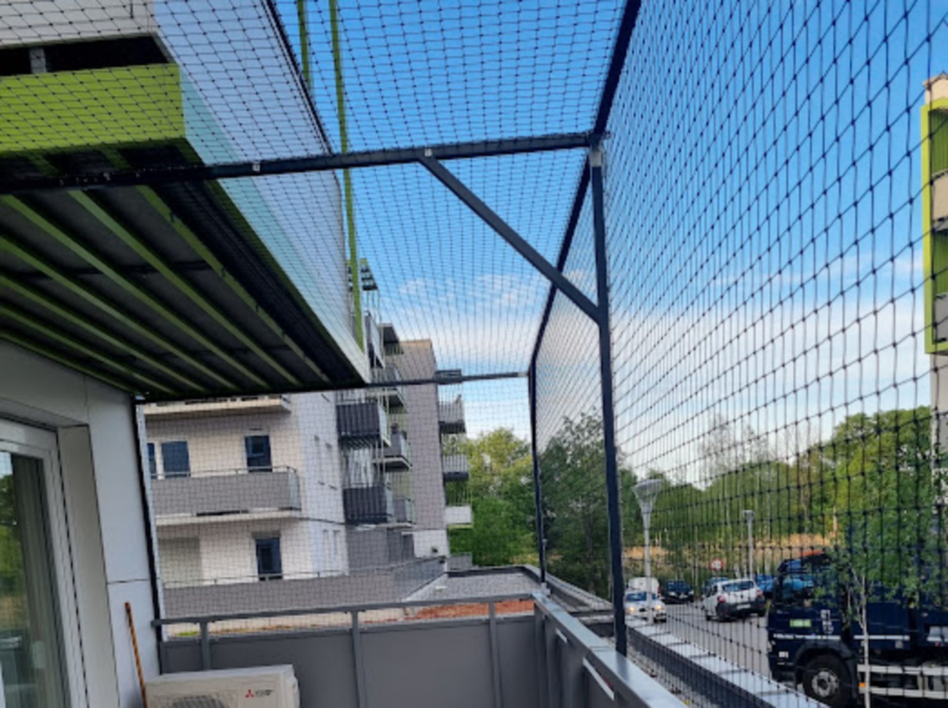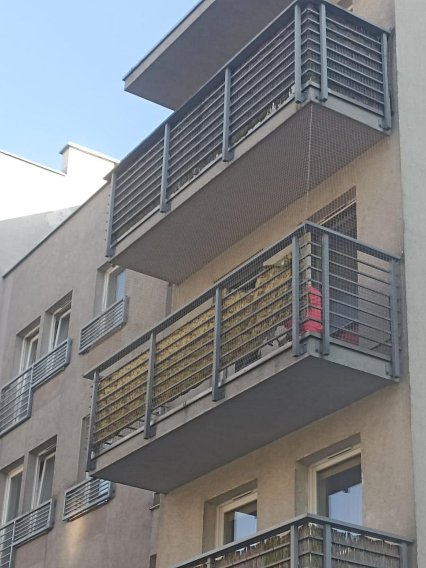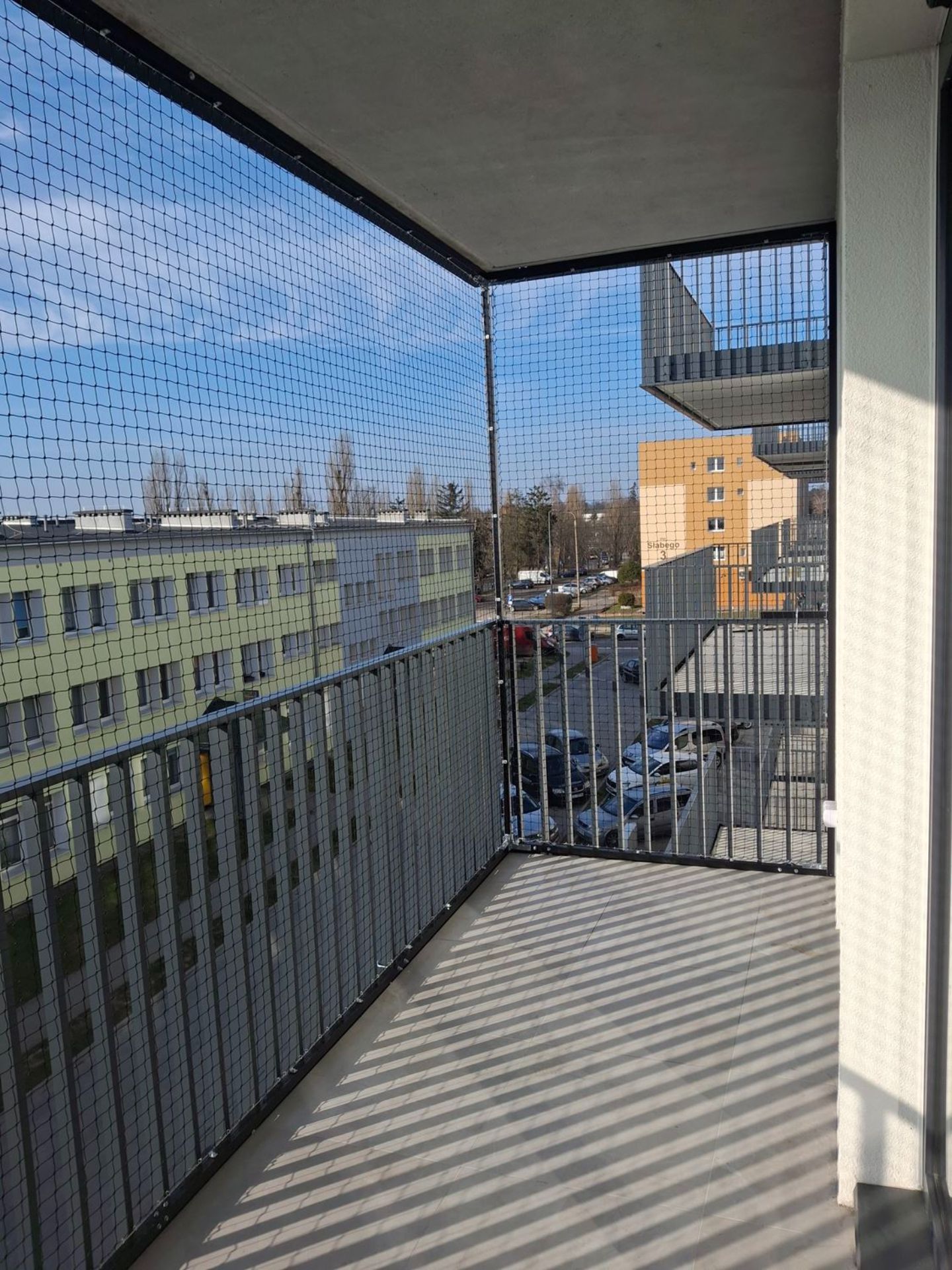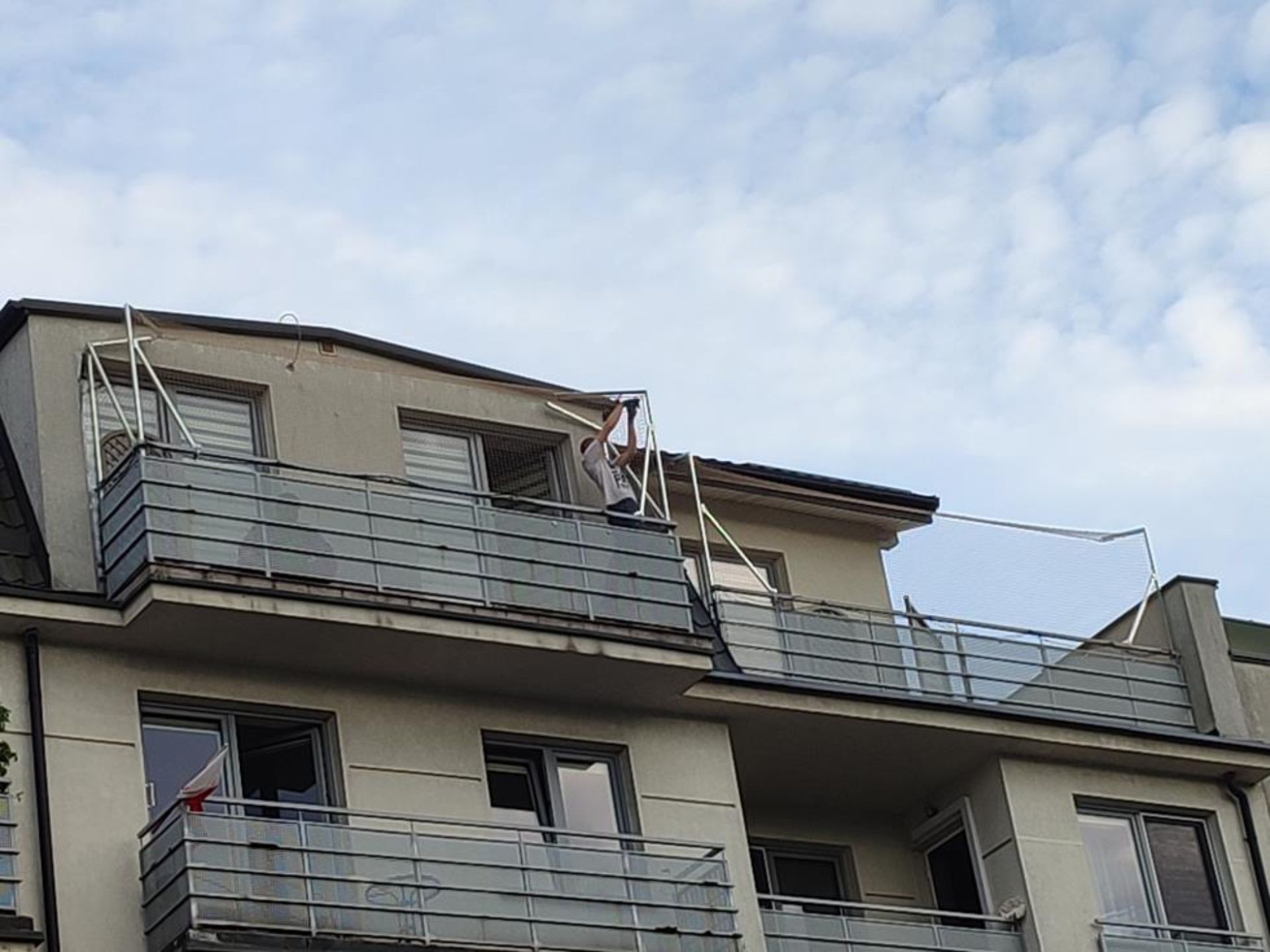 ZABEZPIECZENIE BALKONU ZE STWORZENIEM BRAKUJĄCEGO ZADASZENIA Z SIATKI - GORZÓW WLKP