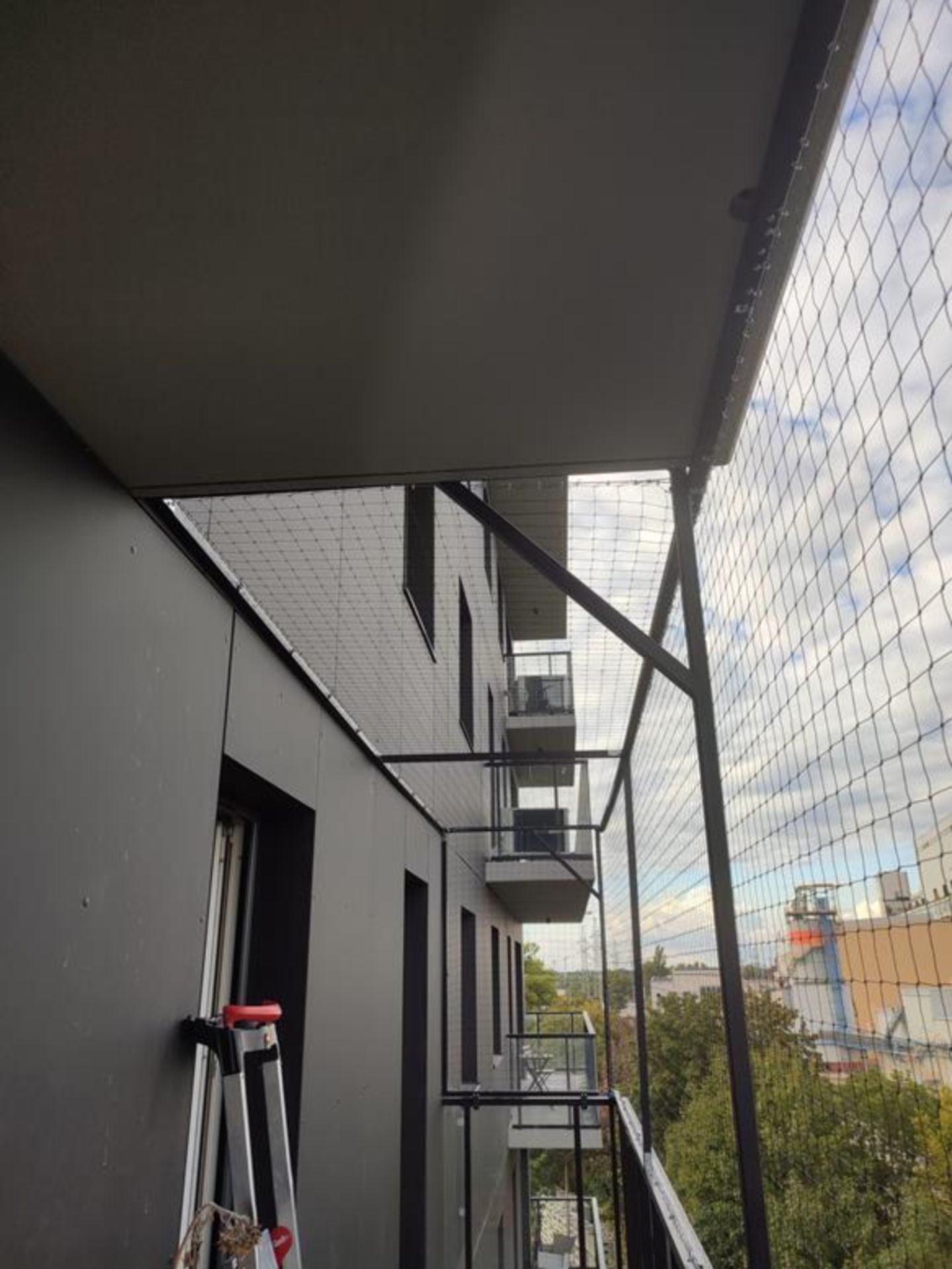 OSIATKOWANIE BALKONU METODĄ BEZINWAZYJNĄ Z ZADASZENIEM Z SIATKI - CZĘSTOCHOWA