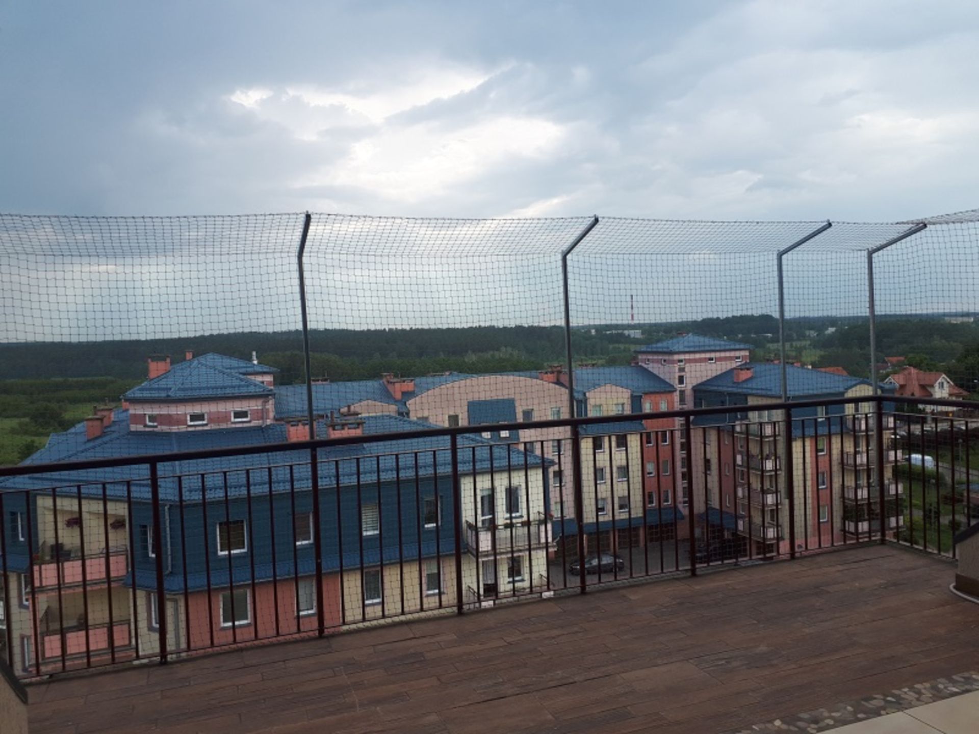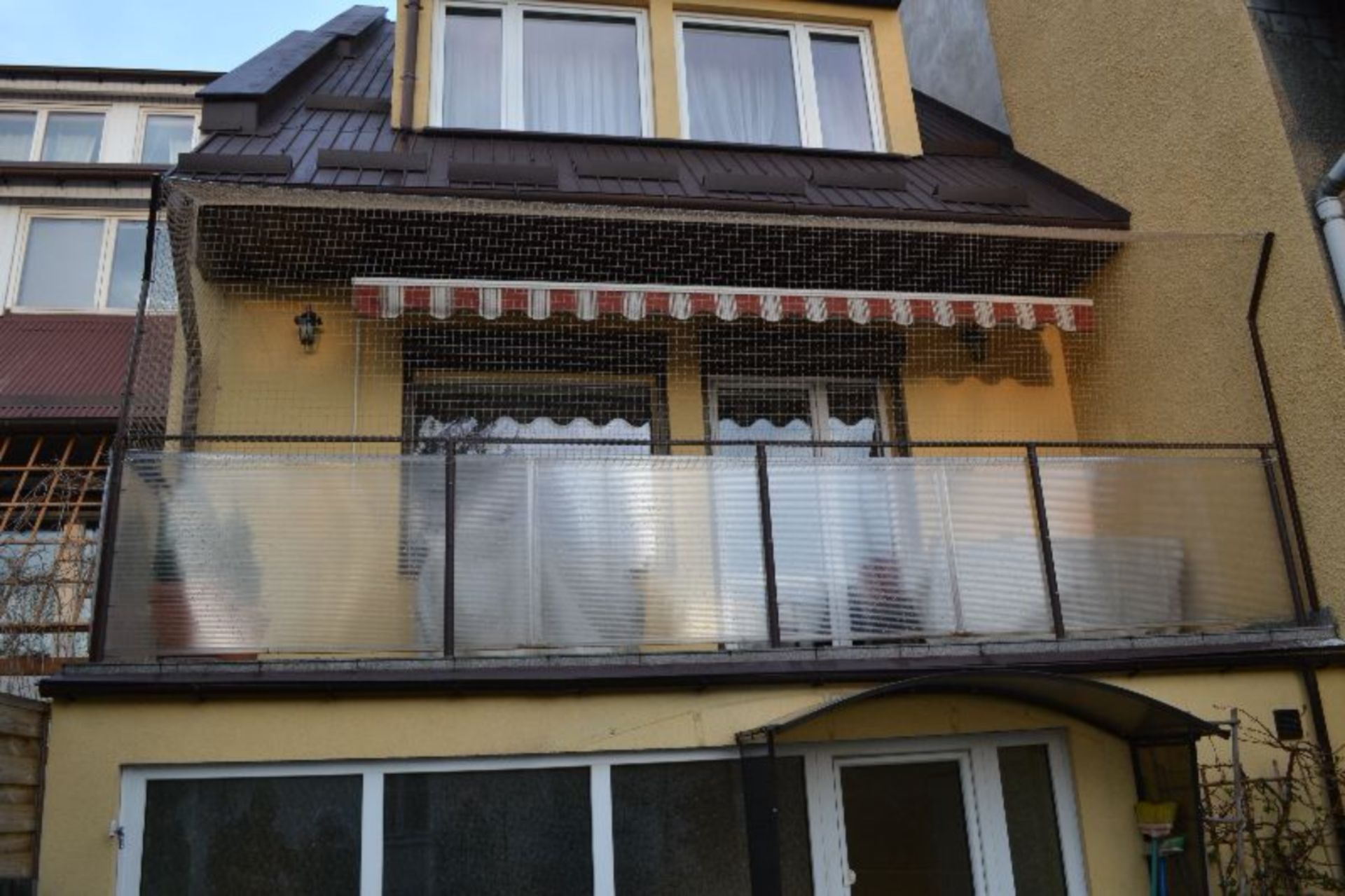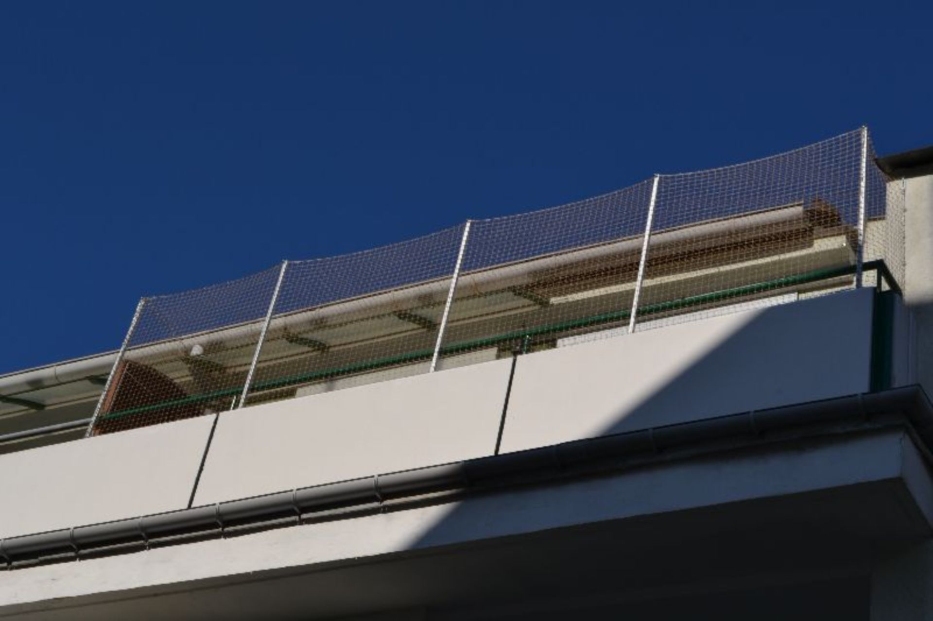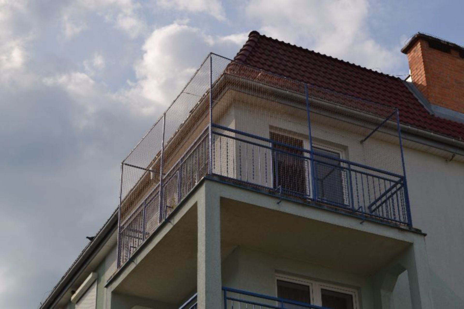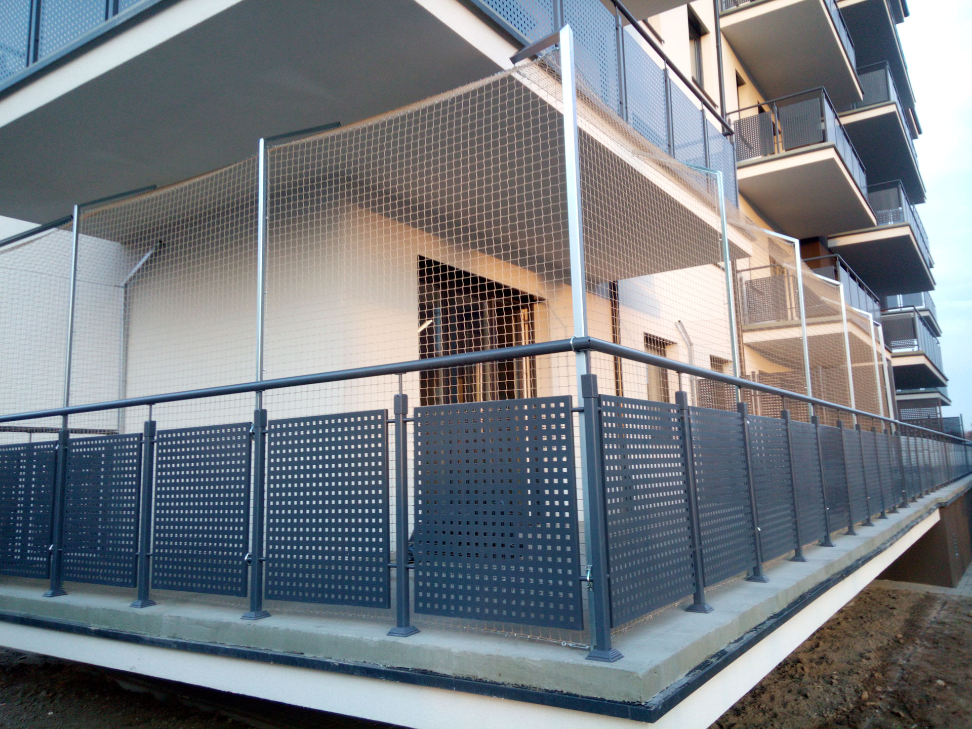 montujemy siatki na stelażach o wysokości około 3 m. Stelaże są zakończone odcinkiem o nachyleniu uniemożliwiającym ucieczkę wspinających się kotów (podobne do wybiegów dla dzikich zwierząt).
