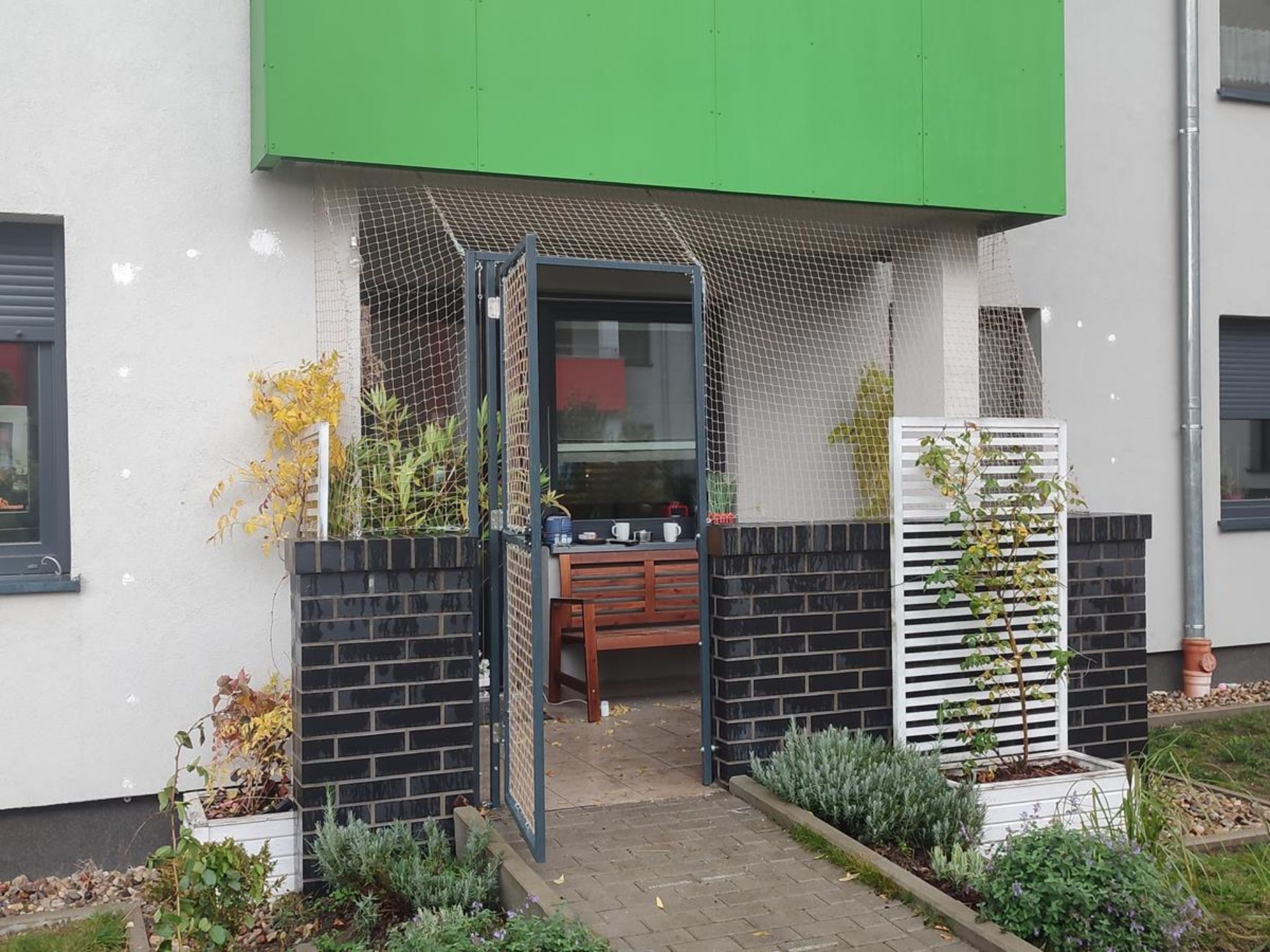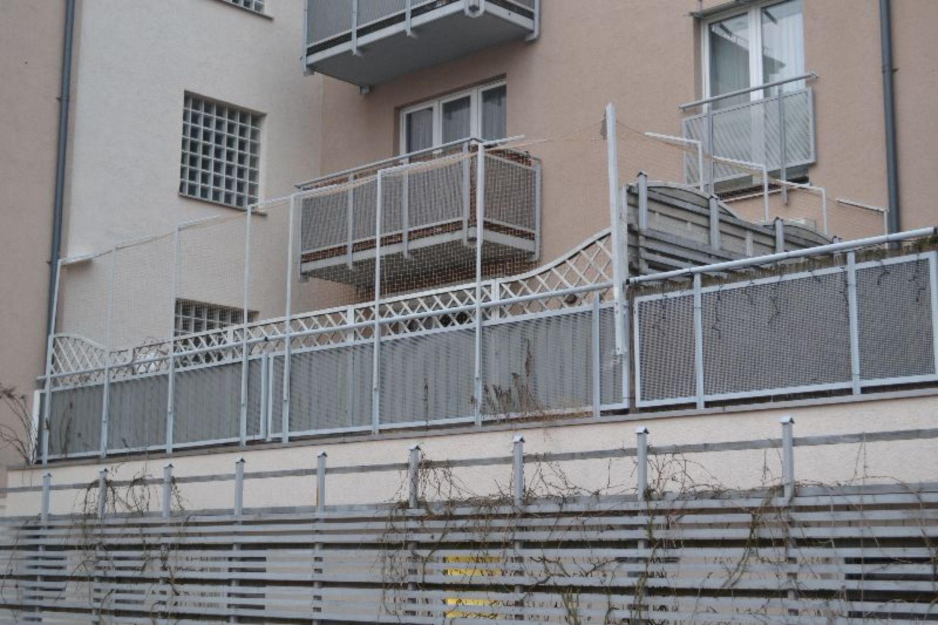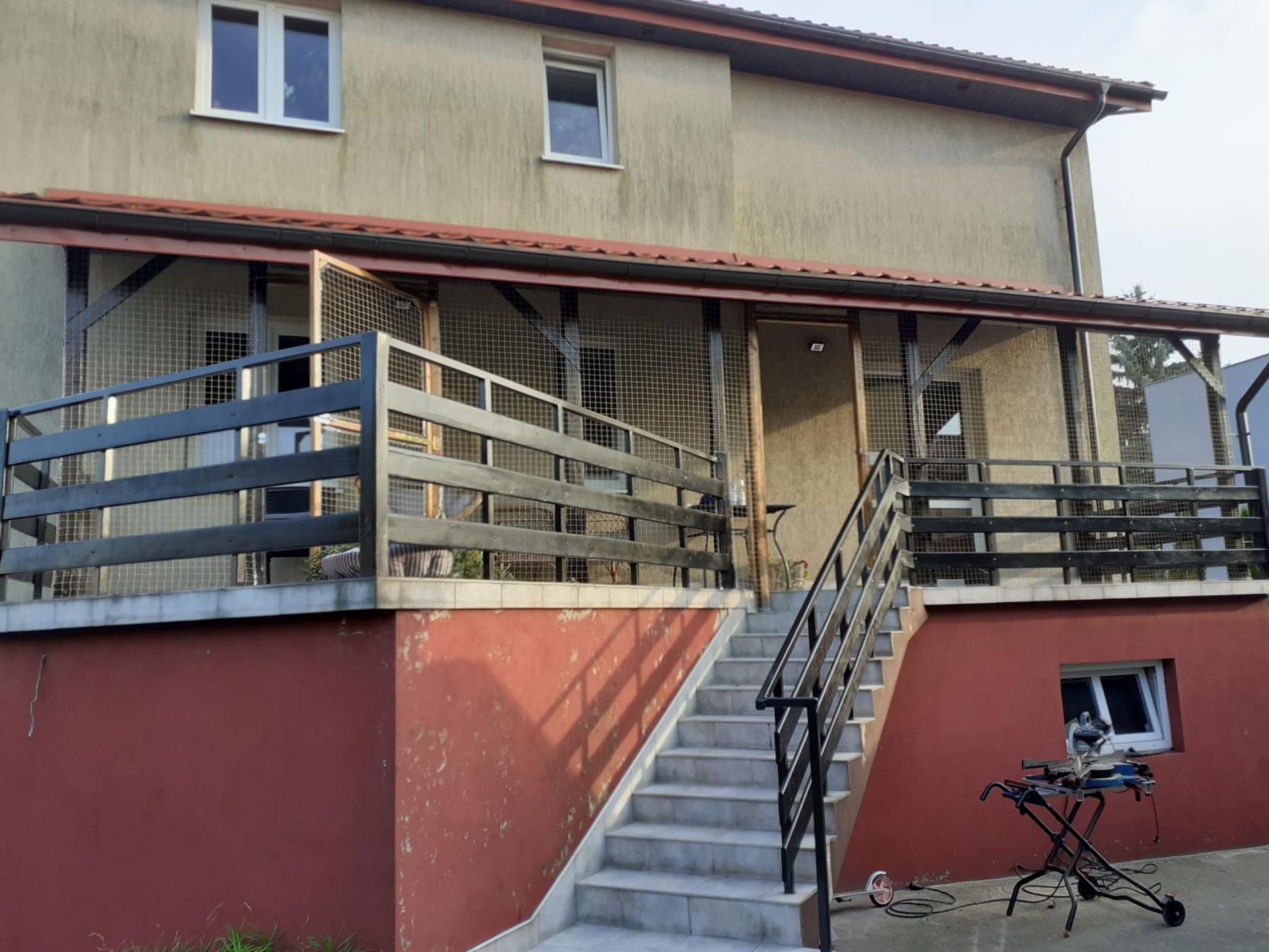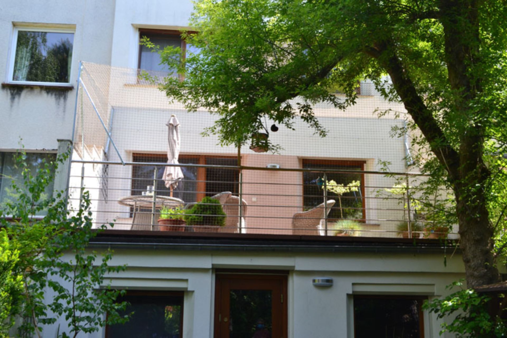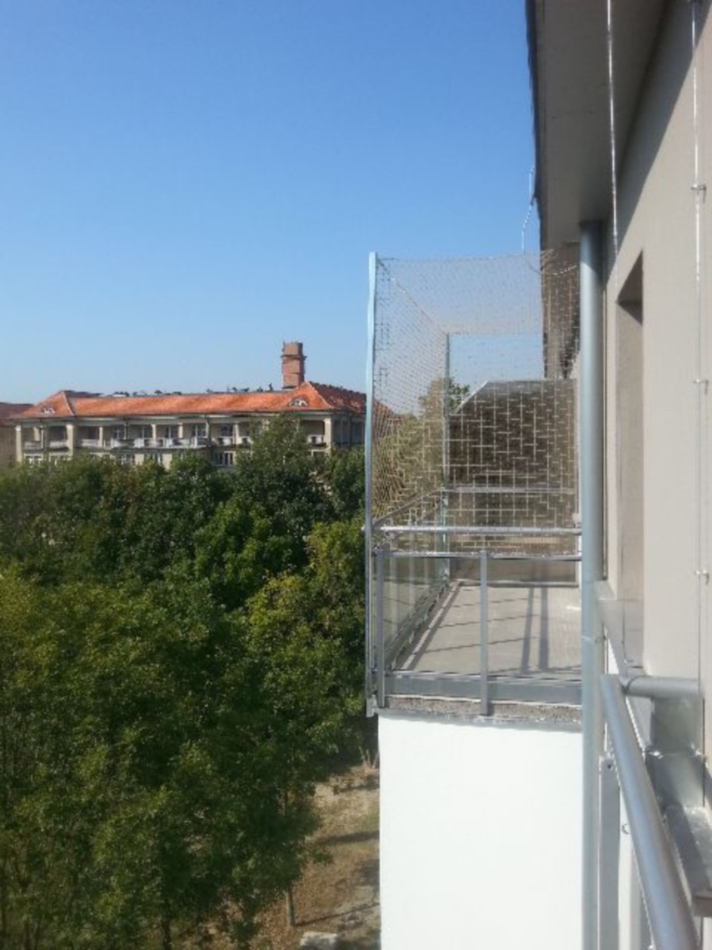 montujemy siatki na stelażach o wysokości około 3 m. Stelaże są zakończone odcinkiem o nachyleniu uniemożliwiającym ucieczkę wspinających się kotów (podobne do wybiegów dla dzikich zwierząt).